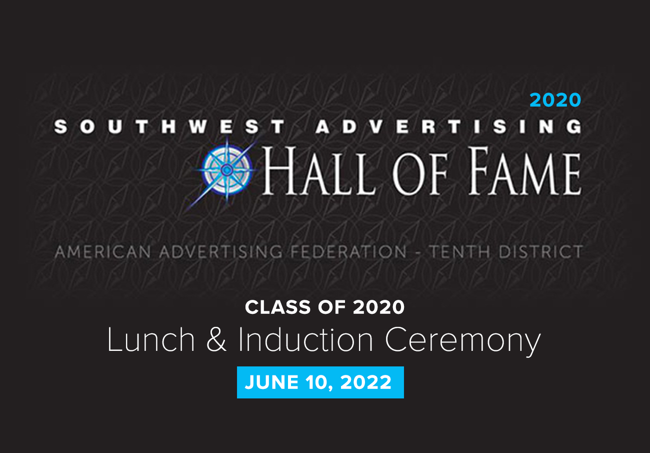 The Southwest Advertising Hall of Fame is proud to announce nine individuals including two sets of partners as the newest members of its 2020 class of inductees: Jim Stuart and Randy Bacon of Fort Worth; Dennis D’Amico of Dallas; Mike Levy of Dallas, Mark McGarrah and Bryan Jessee of Austin, Brad Snyder of Corpus Christi, Mary […]